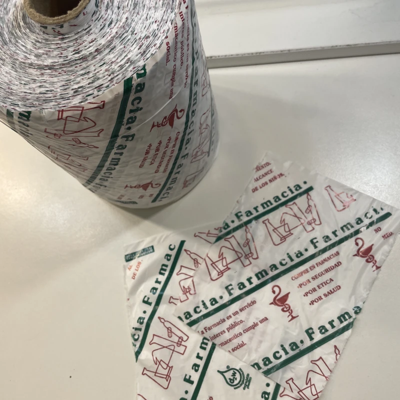 Bolsas en bobina con impresión STANDARD para farmacia. Ideales para packaging de productos farmacéuticos, estas bolsas ofrecen una solución práctica y segura.